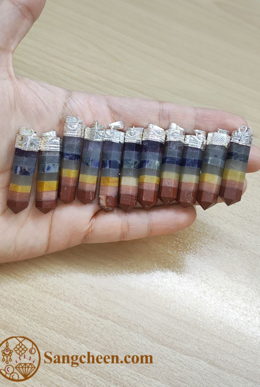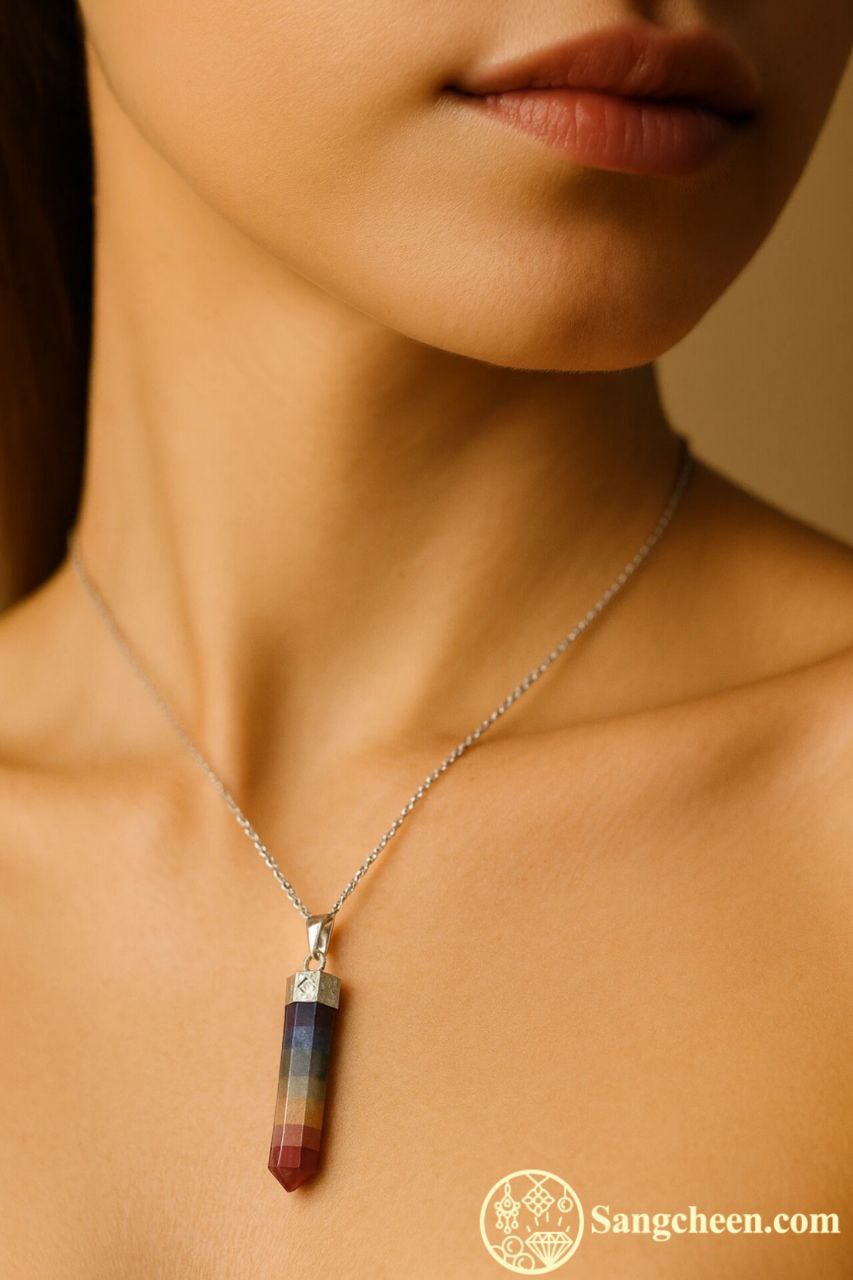 آویز منشور هفت سنگ چاکرا ترکیبی از بهترین سنگ های اصل و با کیفیت مخصوص فعالسازی ، پاکسازی و تنظیم چاکراهاست.