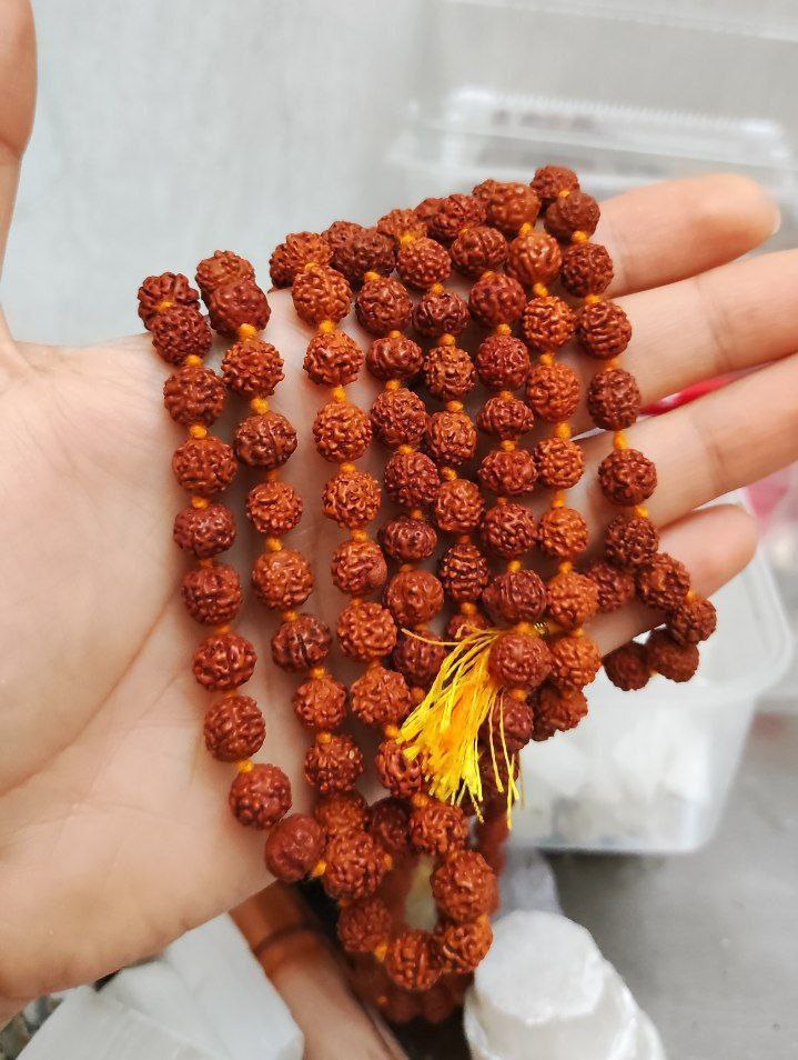 گردنبند رودراکشا گره دار اصل هند از هسته میوه های خشک شده درختی در جنوب شرق آسیا تهیه میشود. این هسته ها را بعد از نخ کردن با حنا رنگ کرده اند و بین هر مهره از گردنبند 108 تایی، یک گره انداخته اند. کاربرد و خواص این رودراکشا با رودراکشاهای بدون گره یا بدون حنا هیچ تفاوتی ندارد، تفاوت تنها در ظاهر آنهاست که برخی بیشتر می پسندند.